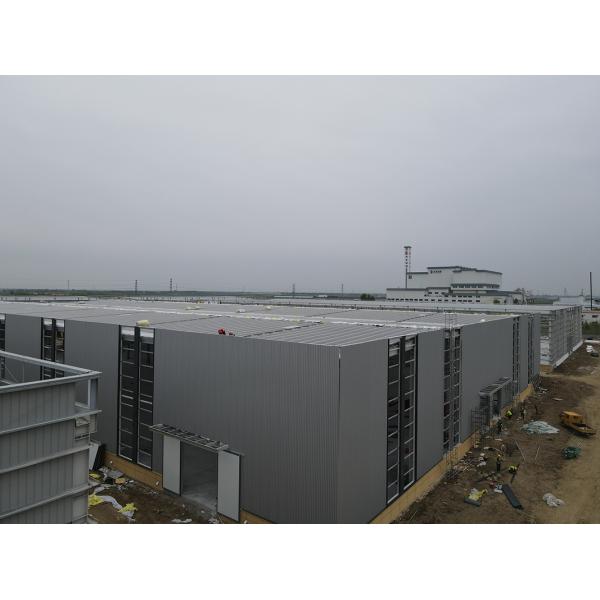 Design: Hybrid steel-concrete system with long-span trusses (up to 24m) to accommodate heavy machinery and flexible layouts.